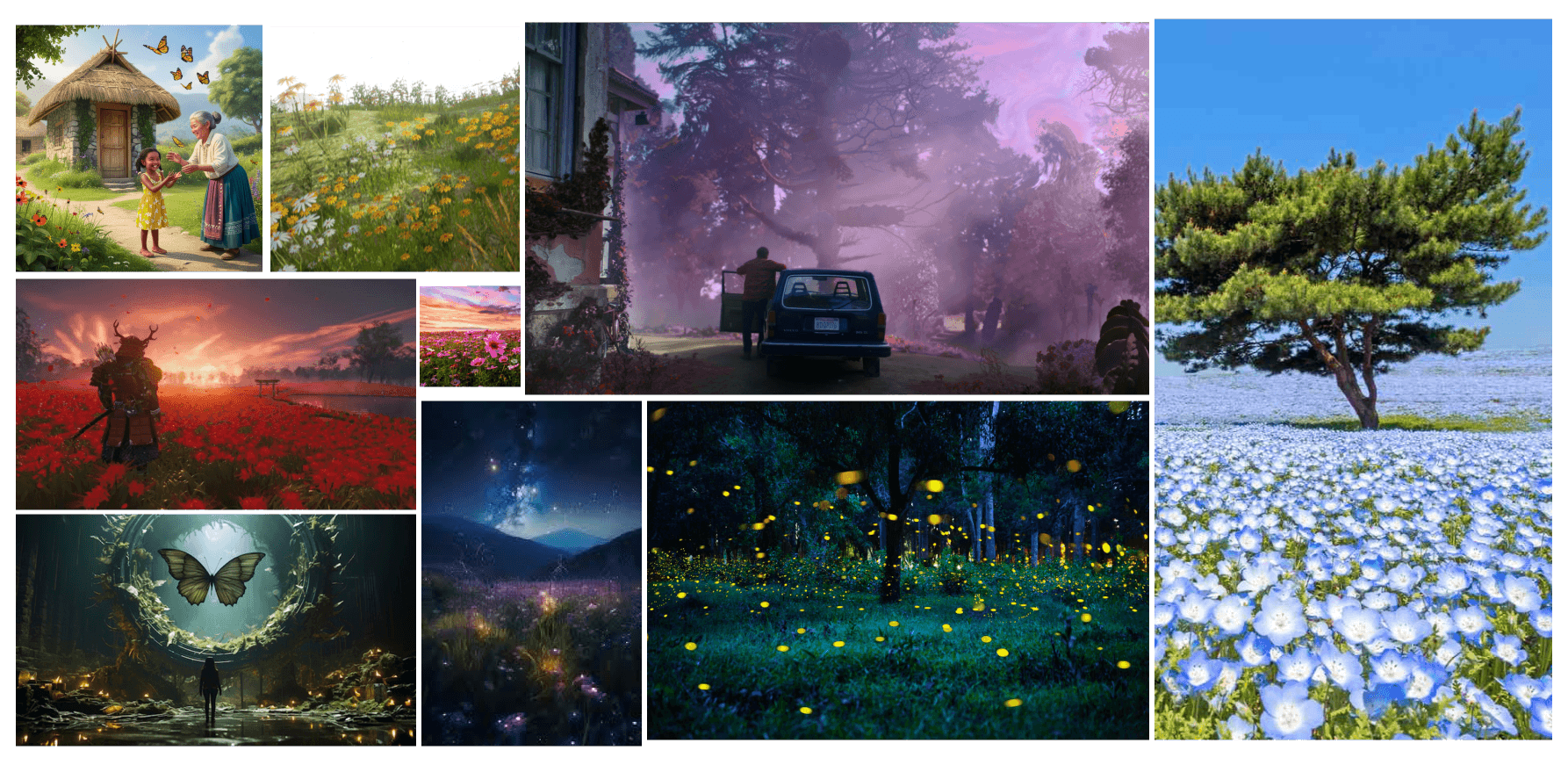 While creating the mood board, I drew inspiration from various movies, video games, real scenarios like Dzukou Valley, and added a touch of fantasy with elements like flowers and fireflies